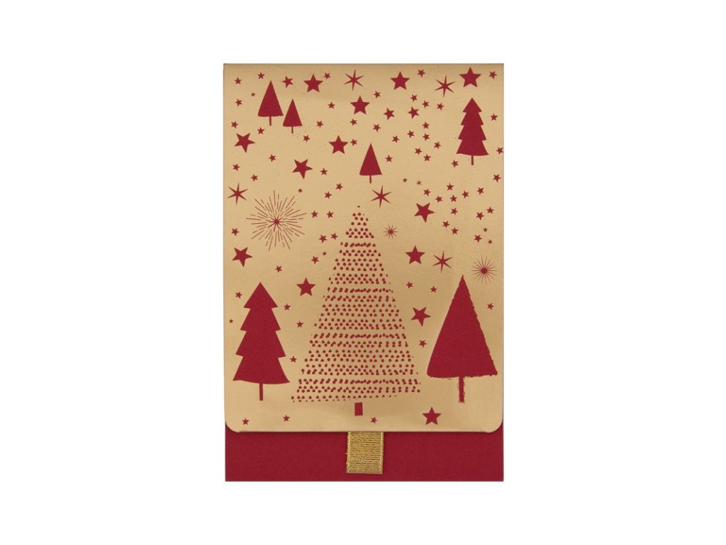 Dárková obálka - přání vánoční stromky/hvězdy, zlatá/červená od německé značky Artebene.