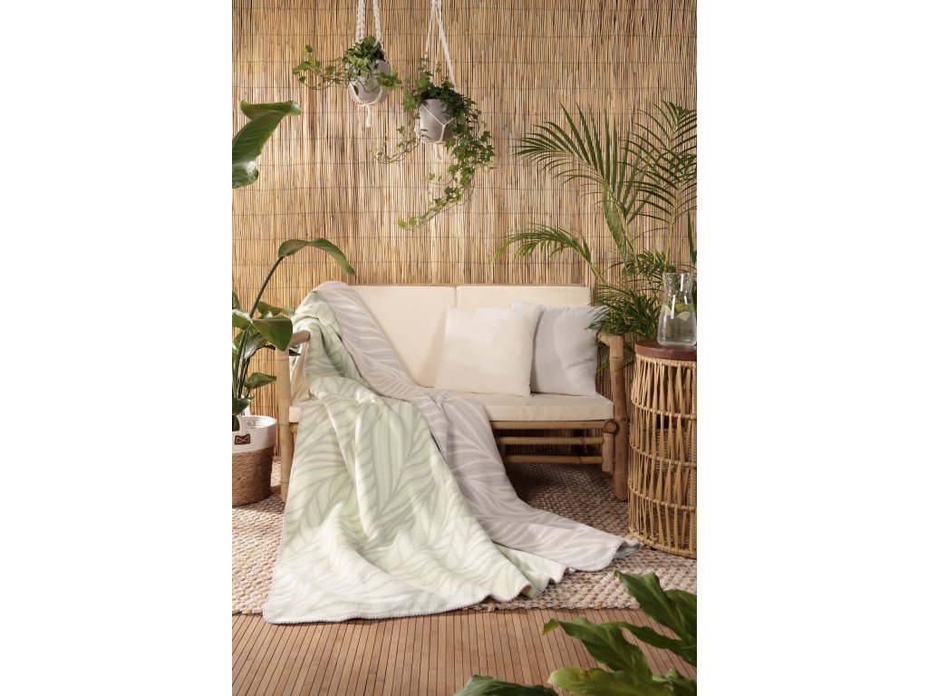 Deka INSPIRED 150 x 200 cm, šedozelená od německé značky Biederlack se vzorem. Deka je útulným společníkem pro Váš domov.