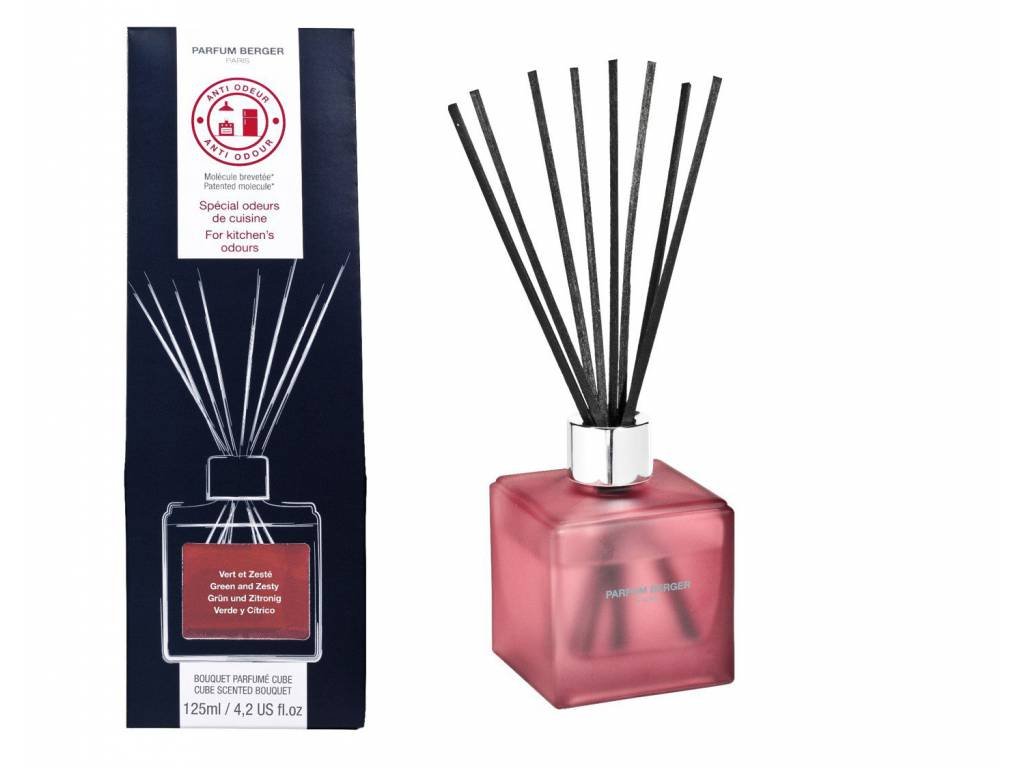 Difuzér s interiérovým parfémem pro neutralizaci kuchyňských pachů od francouzské značky Maison Berger Paris. Difuzér nejen pachy zneutralizuje, ale zároveň interiér provoní.