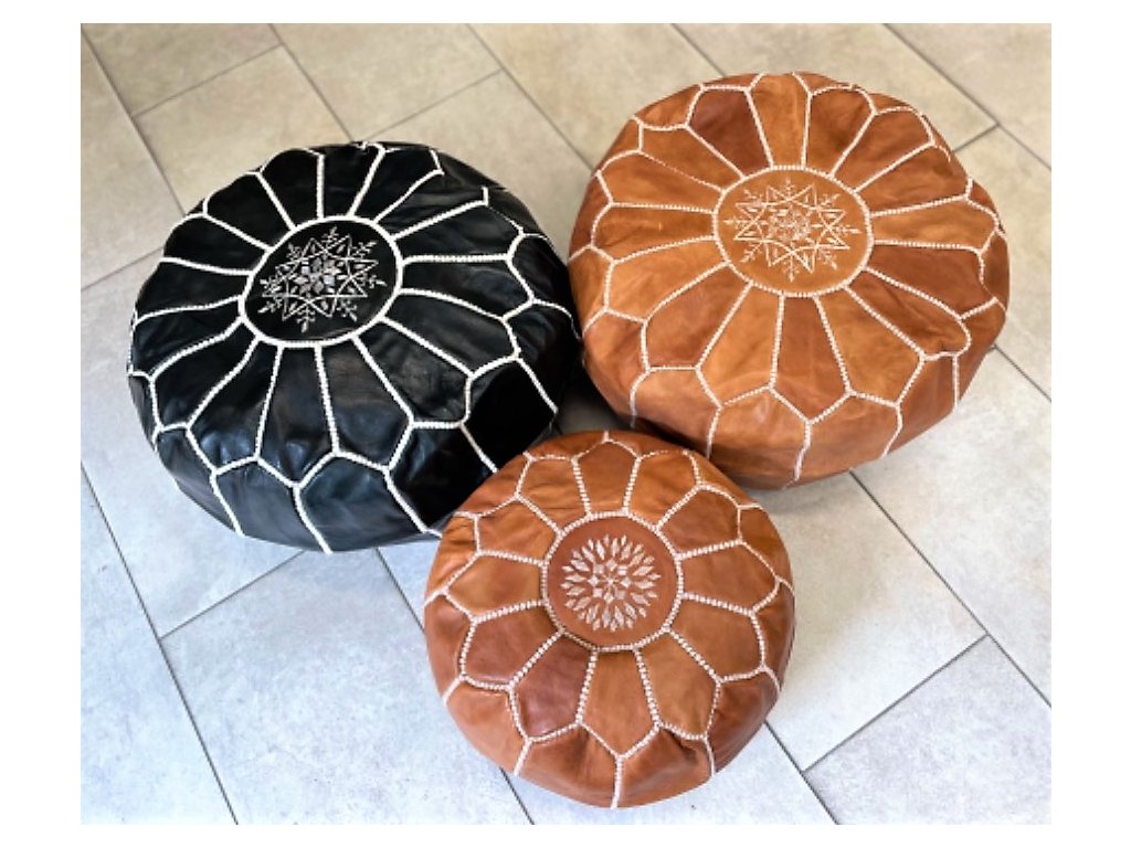 Kožený taburet p. 50 cm, hnědý je ručně vyroben z kozí kůže s krásnou výšivkou.