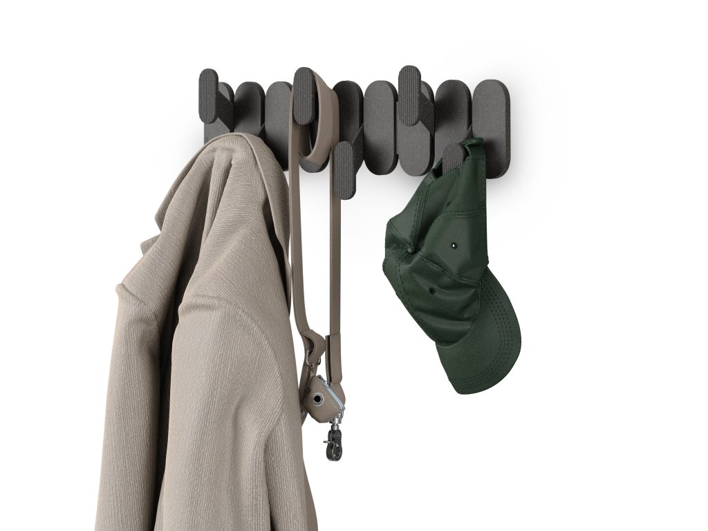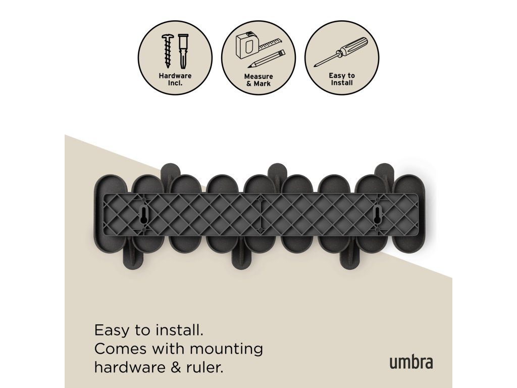 Věšák Umbra TEMPO 6 se snadno montuje na stěnu a díky své úzké siluetě šetří prostor. Je ideální volbou pro všechny, kdo hledají stylový, funkční a nadčasový způsob organizace oblečení. Perfektní kombinace designu a praktičnosti, která dodá vašemu prostoru pořádek i styl.