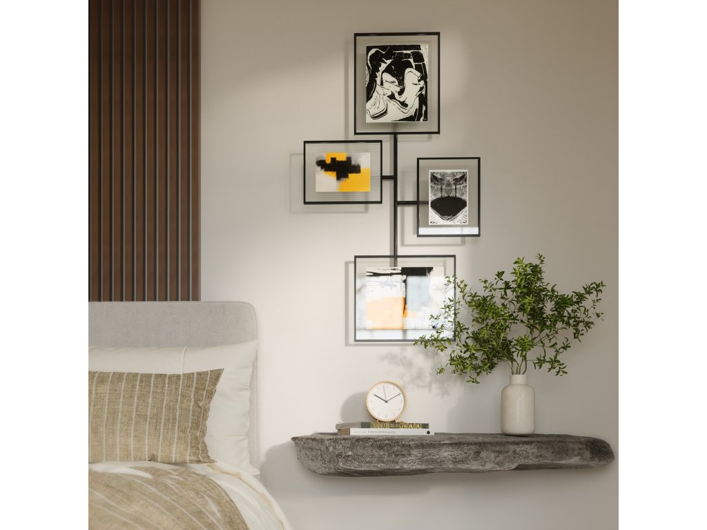 Set rámečků Galerie 4 ks, černá od kanadské značky Umbra představuje stylové a praktické řešení pro vytvoření moderní fotostěny. Minimalistické černé provedení dodá vašim fotografiím, ilustracím či grafikám elegantní kontrast a snadno zapadne do současného i industriálního interiéru.