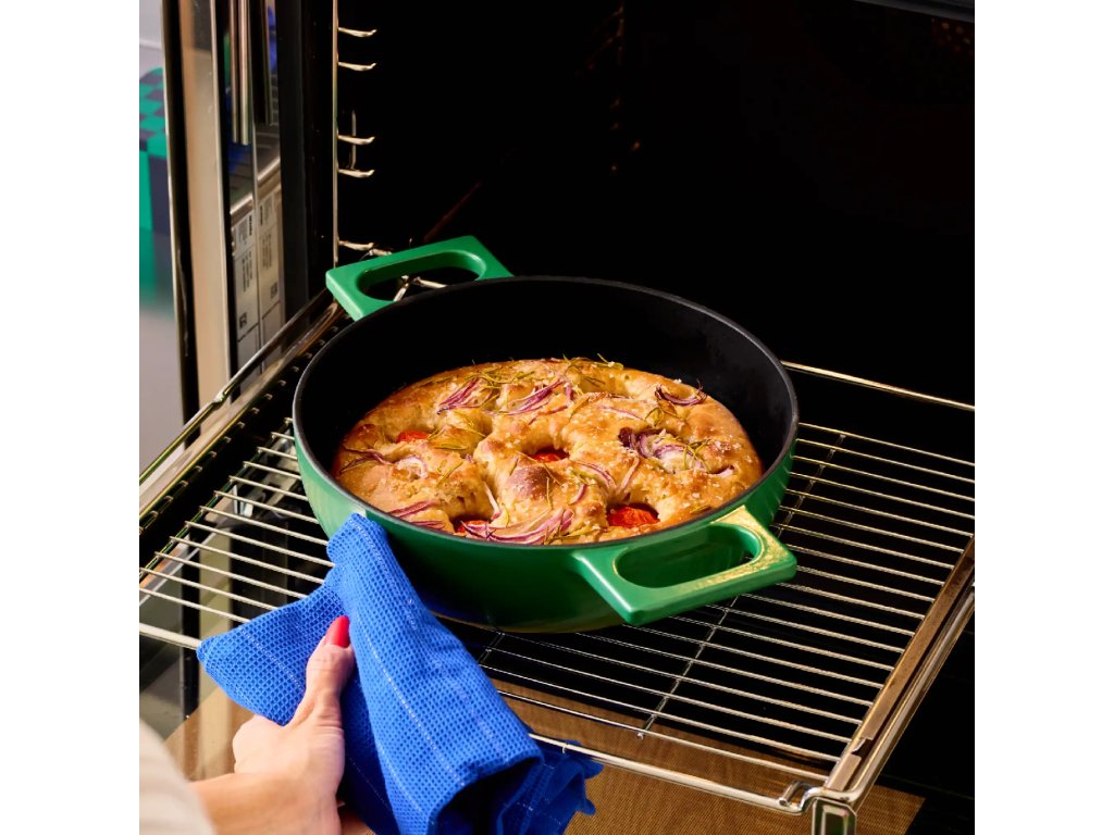 Litinová pánev s poklicí TEGAME Mattia 3.0 Ø 26 cm vyniká kvalitním zpracováním, dokonalým vedením tepla. Ideální pro pečení, dušení i servírování – krásná, zelená a spolehlivá.