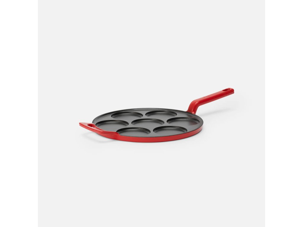 Pánev na lívance Fabini MATTIA 3.0 Ø 26 cm v elegantní červené barvě je vyrobena z kvalitní litiny, která zaručuje rovnoměrné rozložení tepla a dokonalé propečení každého lívance. Díky odolné konstrukci je vhodná na všechny typy sporáků včetně indukce a lze ji použít i v troubě. Stylový design a precizní zpracování dělají z této pánve ideální volbu pro milovníky domácích snídaní.