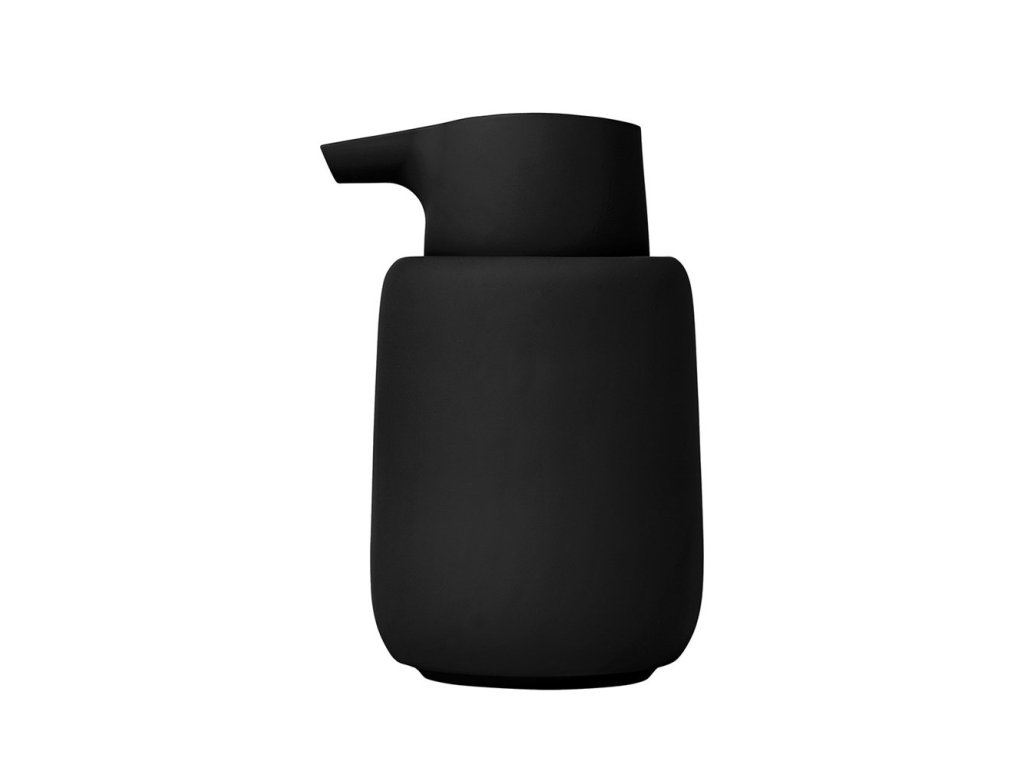 Dávkovač mýdla SONO v. 14 cm, černý od značky Blomus má na dotek příjemný měkký povrch. Mýdlo lze dávkovat lehkým tlakem na hlavu dávkovače. Lze jej kombinovat s dalšími produkty z řady SONO.