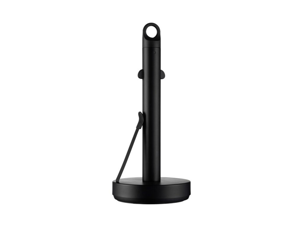 Držák na papírové utěrky LOOP, černý od značky Blomus boduje svou vysokou stabilitou. Základna z nerezové oceli je zatížena závažím a na spodní straně pogumována, takže stojí bezpečně a neklouzá. Role papíru je držena uprostřed dvěma pružinami na tyči držáku. Papír lze odlepit pouze jednou rukou, aniž by se držák kuchyňské utěrky převrátil.