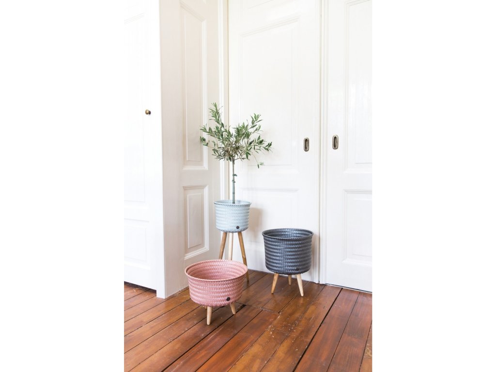 Obal na květiny na dřevěných nohách UP LOW, copper blush od značky Handed By lze využít i jako košík na odkládání věcí. Obaly na květiny se vyrábí ručně.
