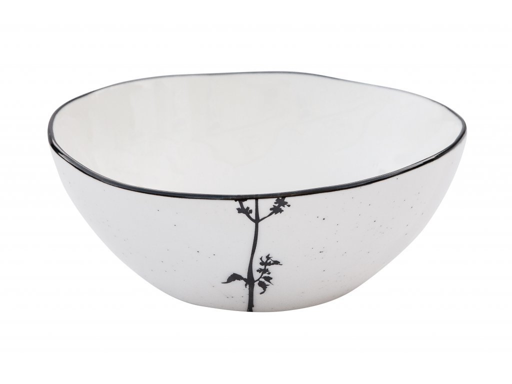 Porcelánová miska FIELD 16 cm na salát a jiné pochutiny od značky by inspire. Miska má nepravidelný tvar a kropenatý povrch s černým okrajem a motivem polní trávy.