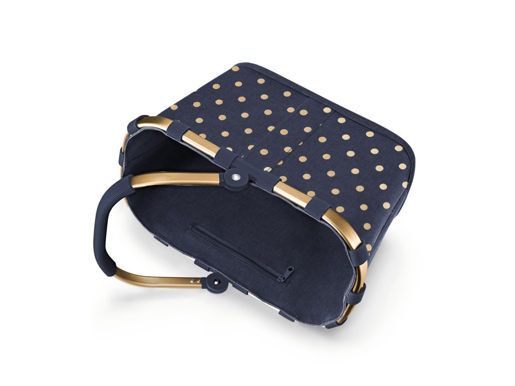 Nákupní košík CARRYBAG XS frame metallic dots blue od značky Reisenthel je krásný a stylový malý košík na malé nákupy. Díky lehké hliníkové konstrukci se velmi dobře nosí.