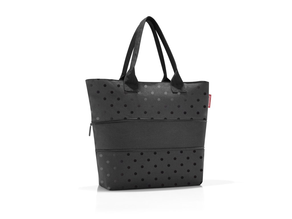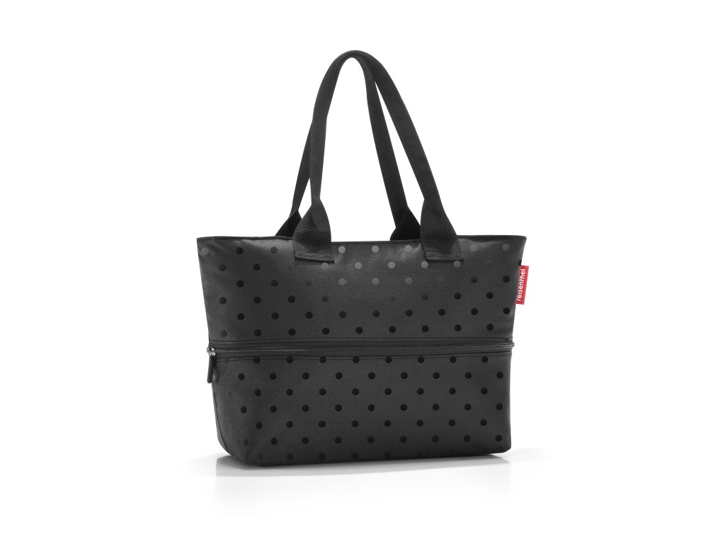 Chytrá taška přes rameno SHOPPER e1, glossy dots black od značky Reisenthel je výborný pomocník při nákupech.
