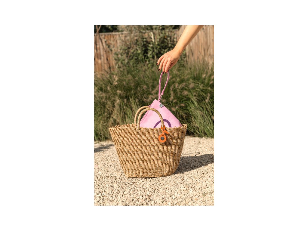 Přírodní světle hnědá barva a přívěsek z PU kůže dodávají tašce stylový vzhled.