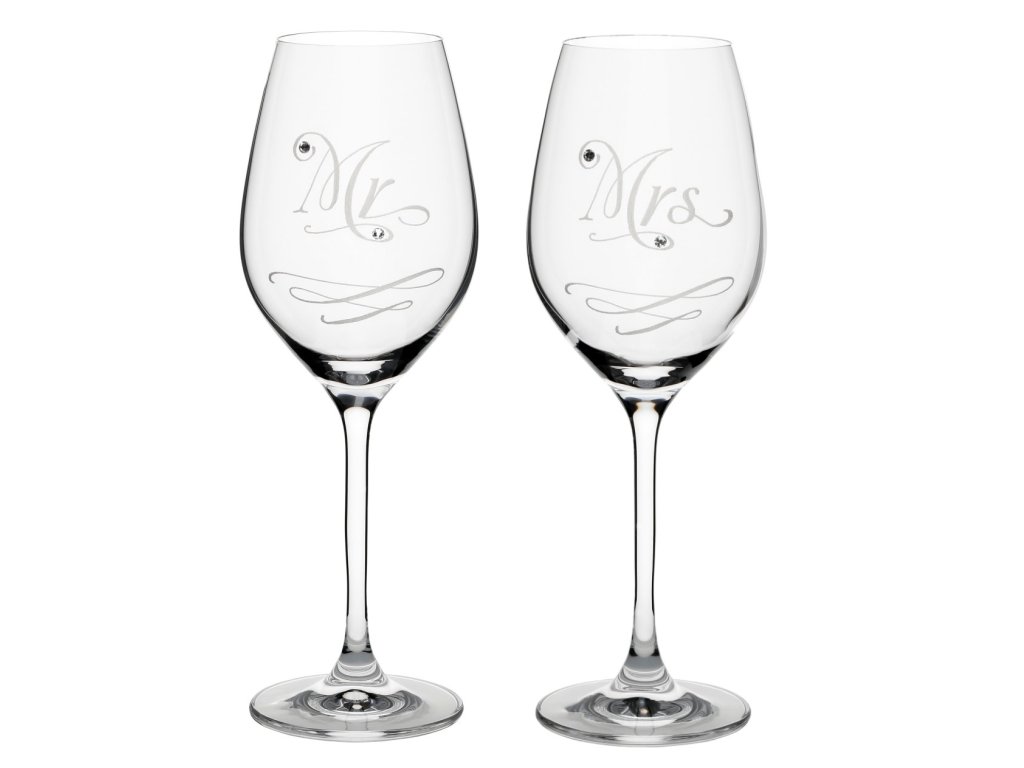 Sklenice na víno Mr. & Mrs. s krystaly Swarovski 360 ml set 2 ks. Vychutnejte si víno z krásných sklenic.