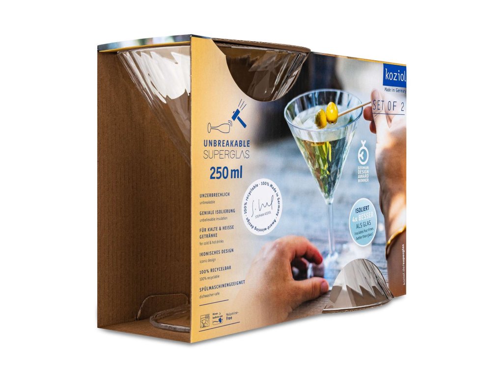 Sklenice SUPERGLAS na martini set 2ks, 250 ml čirá od značky KOZIOL jsou ideální na večírky a různé události. Vychutnejte si oblíbený nápoj stylově.