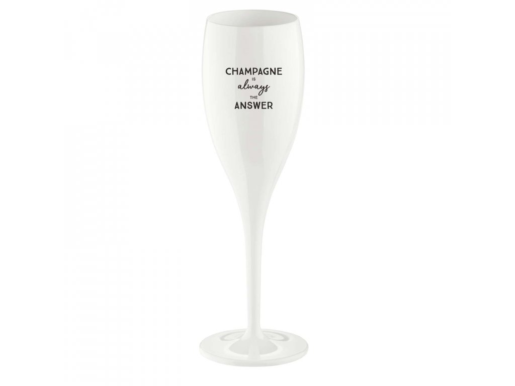 Sklenička CHEERS 100 ml, bílá s potiskem champagne is always the answer od německé značky Koziol.