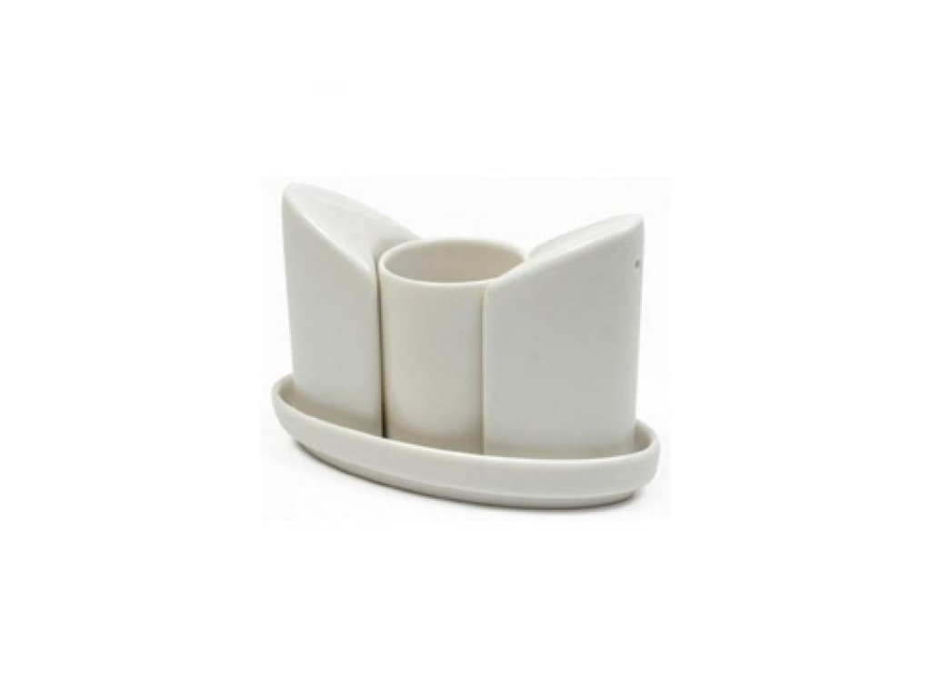 Solnička/pepřenka set BASICS bílá od značky Maxwell & Williams je moderní a nadčasová, má praktický kalíšek na párátka.