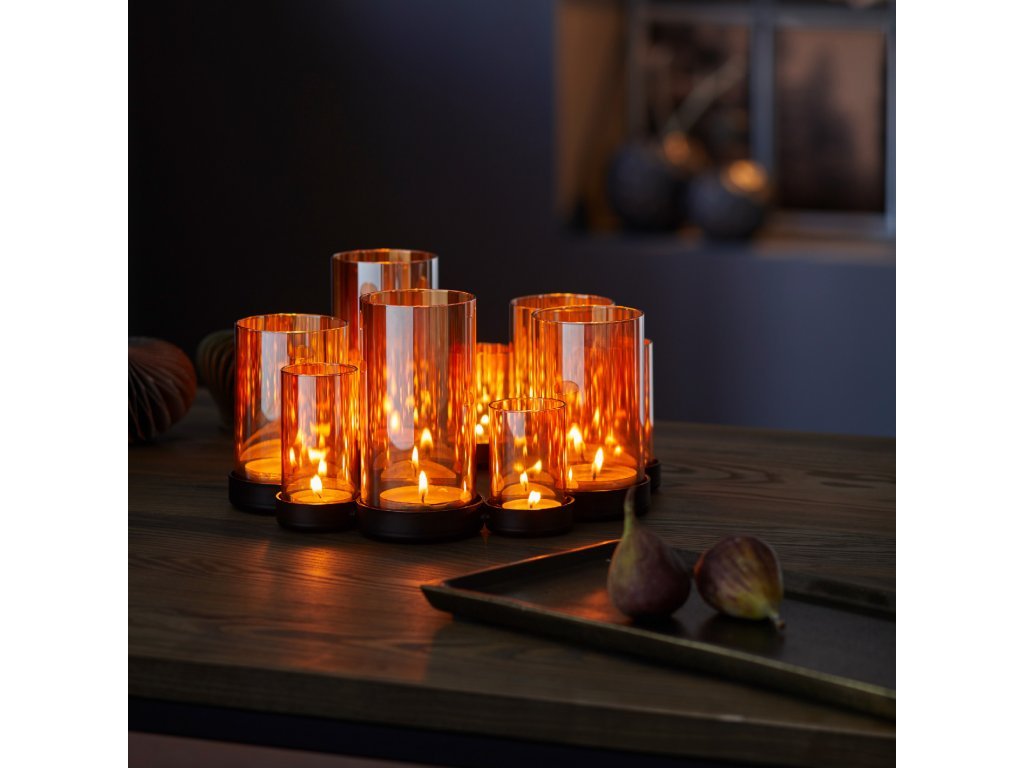 Krásný designový svícen BELLO Horizonte od německé značky PHILIPPI vytvoří krásnou hru světel v deseti skleněných válcích.