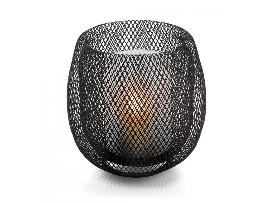 Svícen Mesh od značky Philippi zaujme svým minimalistickým, ale přitom efektním designem. Je vyroben z jemně perforovaného kovu, který při zapálení svíčky vytváří krásnou hru světla a stínu. Matně černé provedení dodává svícnu moderní a nadčasový vzhled, který skvěle zapadne do každého interiéru – od industriálního po skandinávský. Díky své výšce 19 cm se hodí jako výrazný solitér na stůl, komodu či parapet.