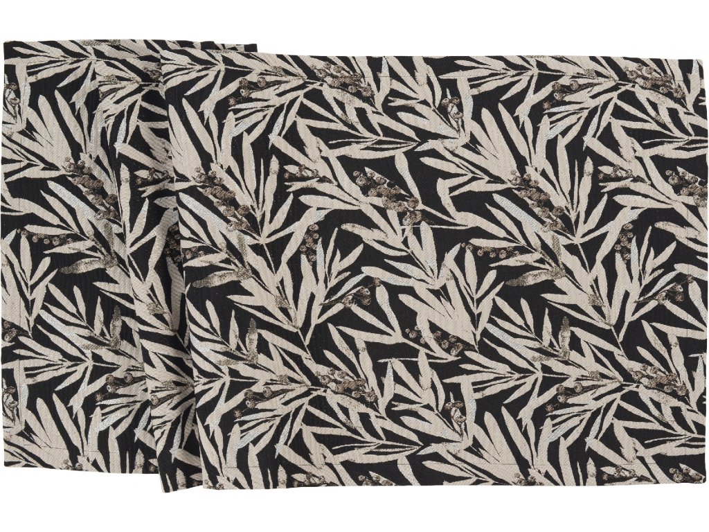 Středový pás JESSIE 50 x 140 cm od značky Sander černý s dekorem béžových listů.