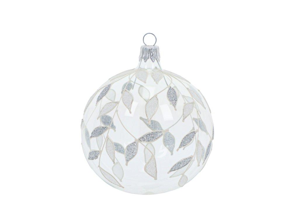 Vánoční koule Lístky stříbrno-bílá 8 cm