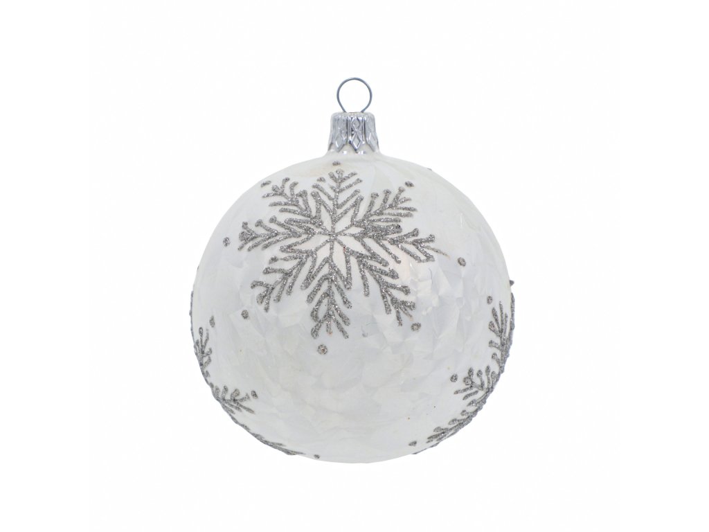 Vneste do svého domova kouzlo zimní pohádky s elegantní vánoční koulí Mrazová vločka – bílá od českého výrobce. Tato skleněná ozdoba o průměru 6 cm je zdobena jemným motivem mrazivé vločky, který evokuje ledové krystalky na okenních sklech. Precizní ruční dekorace a matně bílý povrch dodávají kouli nadčasovou eleganci a čistotu. Skvěle vynikne na tradičním i moderním stromečku, ale také jako součást sváteční dekorace do interiéru. Vyrobeno s láskou a důrazem na detail v České republice.