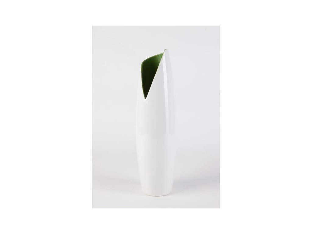 Váza BANANA 45 cm, bílá/zelená od značky by inspire je v přední části zajímavě řešená. Materiál: keramika.